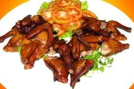 Chim bồ câu PHÁP lai (to hơn nhiều so với bồ câu ta nhé) Giá 150k/cặp đã làm sạch sẽ Mình ship từ 1 cặp trở lên nha các mẹ. Freeship khu vực Tân Bình, Q10, Q11, Q3. Các khu vực khác thỏa thuận khi giao hàng, sẽ cố gắng gộp những đơn hàng để freeship cho các mẹ nhé Giao hàng vào cuối tuần (vì cuối tuần có người nhà từ trại đem về) Sẽ theo yêu cầu thời gian giao hàng đối với các mẹ có nhu cầu đặt số lượng lớn. Các mẹ order theo thông tin sau: DĐ: 01218.820.820 Mail: bocauminhkha@yahoo.com website: http://bocauminhkha.tk/ ----------------------------------------------- Chọn mua chim bồ câu đang ra ràng là tốt nhất, vì lúc ra ràng thịt chim bồ câu rất ngọt và mềm, rất lý tưởng để nấu cháo cho bé. Bạn không nên cắt tiết chim bồ câu, tiết chúng rất bổ. Chim sau khi làm sạch, để ráo nước, cho lên bếp nướng qua cho thịt chim dậy mùi thơm sau đó lọc phần thịt ở hai bên đùi và lườn chim để riêng, băm nhỏ, cắt bỏ chân chim (vì nếu cho vào nấu cháo sẽ bị hôi). Gạo vo sơ cùng ít hạt sen, đậu xanh rồi cho thịt chim vào cùng nồi nấu cháo. Cháo chín, các mẹ múc ra 1 chiếc xoong nhỏ, loại bỏ phần xương, cho thịt chim đã băm nhỏ vào nấu lại cùng cháo. Hạt sen chín bạn nên gắp riêng ra, giã nhỏ mới cho vào khoắng đều cùng cháo. Cuối cùng chỉ việc cho mắm, dầu ăn vào là mẹ đã có một tô cháo ngon và rất sánh của đậu xanh và hạt sen cho bé, đảm bảo bé sẽ rất “mê” cho mà xem. Vài món ăn chế biến từ thịt chim bồ câu: 1) BỒ CÂU NƯỚNG Nguyên liệu: Bồ câu ra ràng đã sơ chế 3 con Ớt sừng 1 quảv Gừng 1 miếng Rau mùi, tỏi, đường, bột cary, nước tương đậu nành, tương ớt, dầu thực vật. Cách làm: Bồ câu rửa sạch để ráo nước. Dùng kéo sắc cắt đôi con chim theo chiều dọc sống lưng để mỗi bên có một cánh và một đùi. Rau mùi nhặt rửa sạch, thái nhỏ. Tỏi, ớt, gừng bỏ vỏ, hạt, rửa sạch, băm nhỏ. Ướp bồ câu với tỏi, ớt, gừng băm nhỏ, rau mùi, 1/2 thìa cà phê bột cary, 2 thìa nước tương, tương ớt, đường, dầu ăn khoảng 30 phút cho ngấm. Xếp bồ câu vào vỉ, nướng trên bếp than hoa, lật đều tay, thịt chim chín có màu vàng và mùi thơm rất hấp dẫn. Ăn nóng với cơm. 2) BỒ CÂU NƯỚNG XÔI ![]() 1.Nguyên liệu: Xôi (nếp): 200g Bồ câu: 1 con Nước tương: 1 muỗng súp Gia vị (bột nêm): 2 muỗng cà phê Ngũ vị hương: ¼ muỗng cà phê Dừa tươi: 1 trái (lấy nước) Xà lách xoong: 1 ít Dầu ăn: 1 ít 2. Cách làm: - Bồ câu làm sạch, để ráo, ướp hạt nêm, nước tương, ngũ vị hương, để thấm 20 phút. - Bắc chảo lên bếp, cho vào ít dầu, đợi dầu sôi, cho bồ câu vào chiên đều hai mặt. Khi thịt hơi săn, cho nước dừa vào, hạ lửa riu riu, rôti cho đến khi bồ câu ngả màu vàng nâu, nước cạn sền sệt là được. - Trải xôi ra, cho nguyên con bồ câu vào, bọc lại, đem nướng cho đến khi nếp vàng rộm. Món này dùng nóng ăn kèm nước tương và xà lách xoong. 3) BỒ CÂU QUAY NƯỚC DỪA ![]() Nguyên liệu: Chim bồ câu: 4 con Dừa xiêm: 1 trái Hành lá, hành tím, tỏi Gia vị: muối, tiêu, ngũ vị hương Cách làm: Hành tím, tỏi, đầu hành lá bằm nhuyễn. Bồ câu làm sạch, ướp với 2 thìa cà phê hành lá, 2 thìa cà phê hành tím, 1 thìa cà phê tỏi, thìa cà phê muối, 1 ít tiêu và 1 thìa cà phê ngũ vị hương, để thấm. Đun nóng dầu, cho bồ câu vào chiên vàng rồi thêm nước dừa vào, đun lửa vừa, thỉnh thoảng trở mặt. Quay bồ câu khoảng 20 phút thì tắt bếp. Dùng kéo cắt đôi miếng thịt, xếp ra đĩa, dùng nóng với muối tiêu chanh và xà lách trộn. Mách nhỏ: - Nên ướp gia vị đều khắp miếng thịt để khi quay thịt sẽ mềm và không bị khét. - Không nên ướp thêm đường vì trong nước dừa đã có sẵn vị ngọt vừa phải./. 4) BỒ CÂU QUAY DA GIÒN ![]() Nguyên liệu - 2 con bồ câu, làm sạch, để ráo - 1 gói ngũ vị hương - Mật ong, muối, đường, xì dầu Cách Làm: Pha hỗn hợp gồm: muối, đường, mật ong, xì dầu Thoa đều gia vị bên ngoài và trong bụng bồ câu, để khoảng 2 giờ cho ngấm gia vị Có hai cách thực hiện: Cách 1: Cho bồ câu đã ướp vào lò, quay cho đến khi da bồ câu giòn và vàng đều Cách 2: Hấp chín bồ câu, vớt ra để nguộị Dầu sôi, xối lên mình bồ câu cho đến khi da vàng đều Thưởng thức: Khi dùng, chặt bồ câu làm tư, xếp ra đĩa, trang trí rau mùi tây và vài quả cà chua nhỏ Dùng nóng với cơm nóng hoặc bánh mì Dọn kèm với dưa chuột, đồ chua và tương ớt. 5) CHÁO BỒ CÂU ĐẬU XANH ![]() Nguyên liệu 2 con bồ câu 100gr gạo dẻo 50gr đậu xanh 100gr nấm rơm 2 lít nước dùng gà Hành tây, hành ngò, muối, tiêu Thực hiện Bằm nhuyễn bồ câu lẫn cả thịt và xương, chỉ chừa lại cánh và đầu. Ướp bồ câu với một chút muối, tiêu, hành tím bằm để cho thấm. Cho gạo vào nước dùng gà nấu sôi lên rồi mới cho đậu xanh đã ngâm mềm và nấm vào nấu lửa vừa cho chín. 6) CHÁO BỒ CÂU PHÔ MAI ![]() Nguyên liệu: -1 con chim bồ câu -1 miếng phômai con bò cười -20gr gạo ngon để nấu cháo -15gr rau ngót -1 muỗng cafe nước mắ