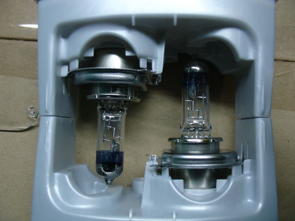 Cận cảnh 2 anh em Osram NBP (bên trái, chân đồng vàng ) và Philips khi đứng bên nhau nè.